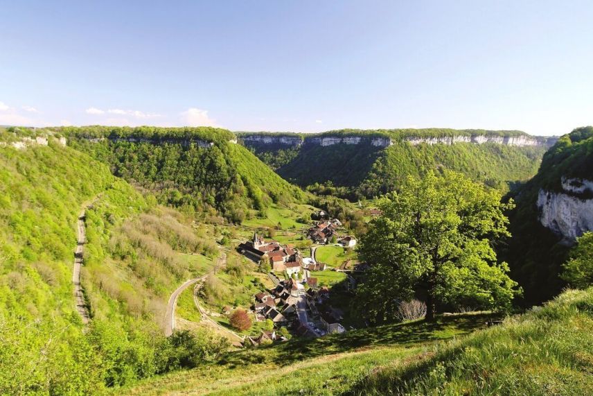 Au pied de vertigineuses falaises, Baume-les-Messieurs est niché au milieu de trois reculées typiques du Jura. Visite libre du village et de la vallée de la Seille. Déjeuner au restaurant. L’après-midi, visite guidée de l’abbaye impériale fondée au 6ème siècle. Puis visite guidée des grottes de Baumes-les-Messieurs : à 120 m sous terre, un parcours sur 1 km nous dévoilera d’immenses salles, une rivière et un lac.
